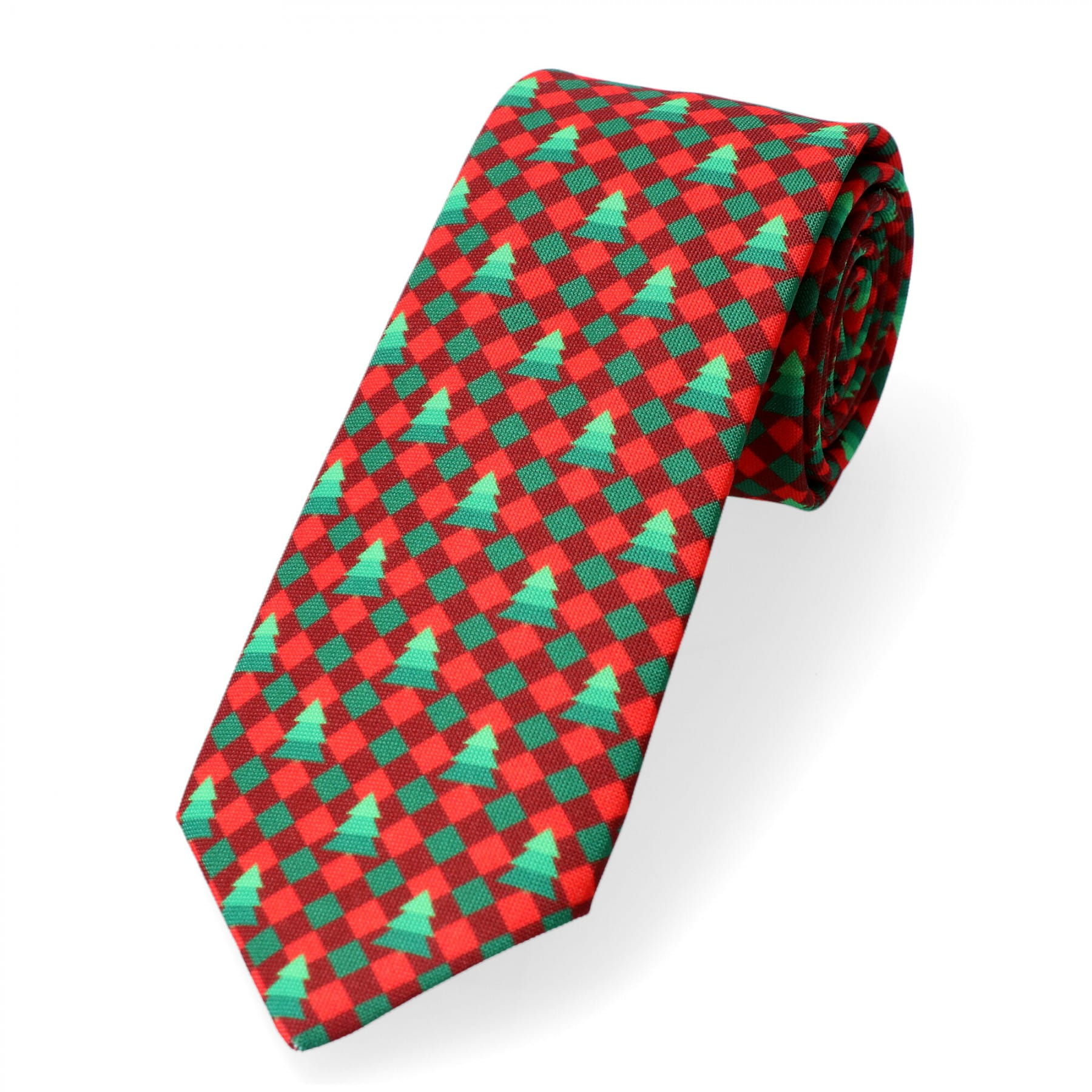 Krawat Świąteczny Choinki czerwono-zielony
