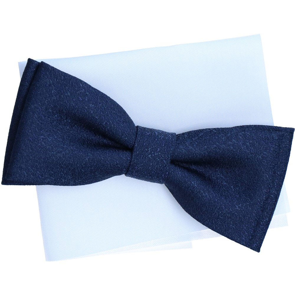 Granatowa muszka dziecięca o delikatnej fakturze z białą poszetką – elegancki dodatek dla chłopca