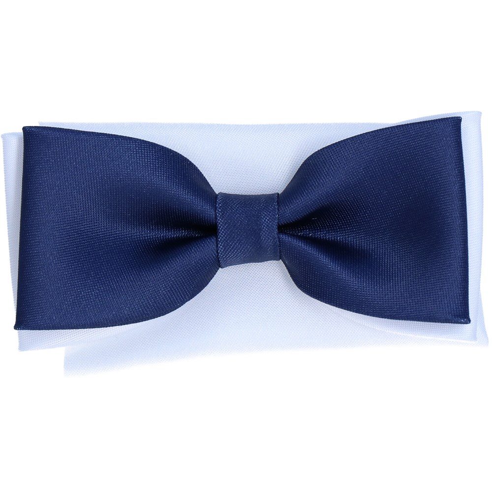 Granatowa muszka dziecięca o delikatnej fakturze z białą poszetką – elegancki dodatek dla chłopca