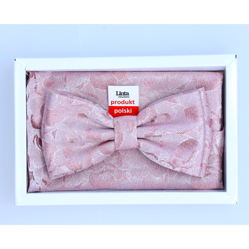 Poznaj ekskluzywną muszkę żakardową w kolorze bladego różu z pięknym wzorem w kwiaty.