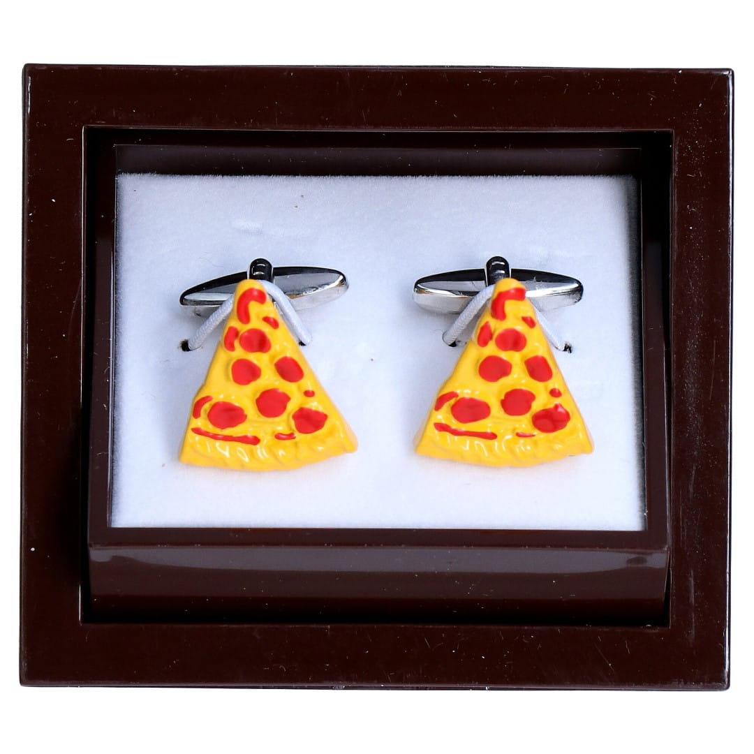 Spinki do mankietów z motywem kawałków pizzy- stylowy i ekstrawagancki dodatek do eleganckiej koszuli.