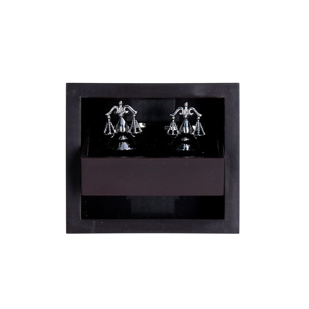 Spinki do mankietów z motywem wagi sądowej to stylowy i ekstrawagancki dodatek do eleganckiej koszuli.