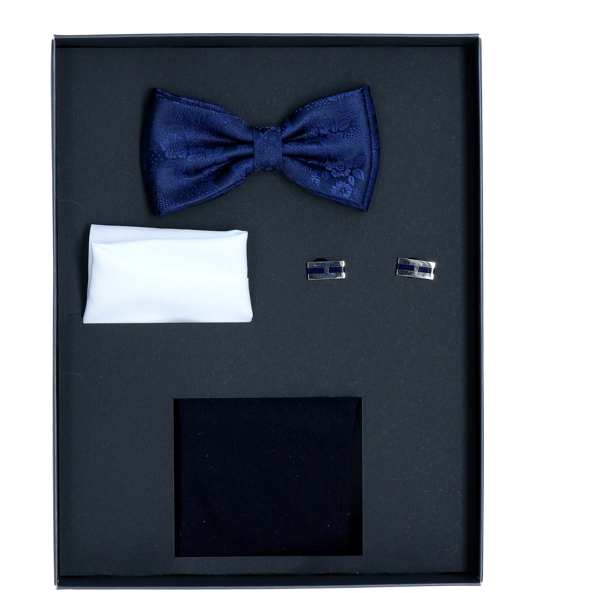 Zestaw Niebiesko-Biały Muszka-Spinki-Poszetka-Skarpety