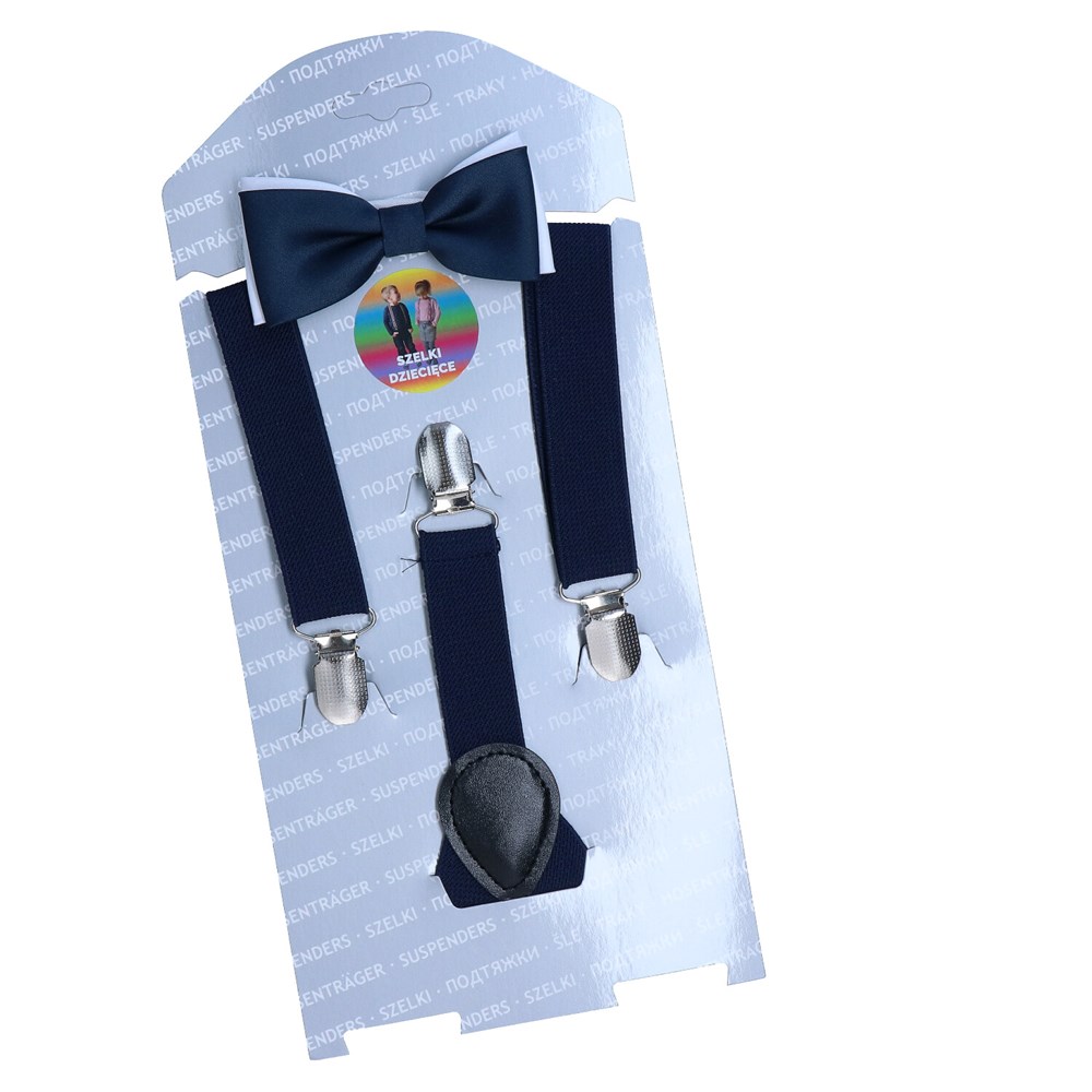 Zestaw dziecięcy muszka-szelki granatowo-biały