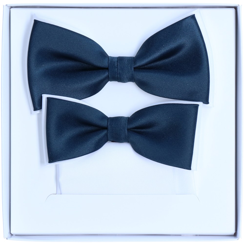 W komplecie znajduje się muszka męska oraz muszka dziecięca, dzięki czemu tata i syn mogą stworzyć spójny, dopracowany look na ważne uroczystości i wspólne zdjęcia.