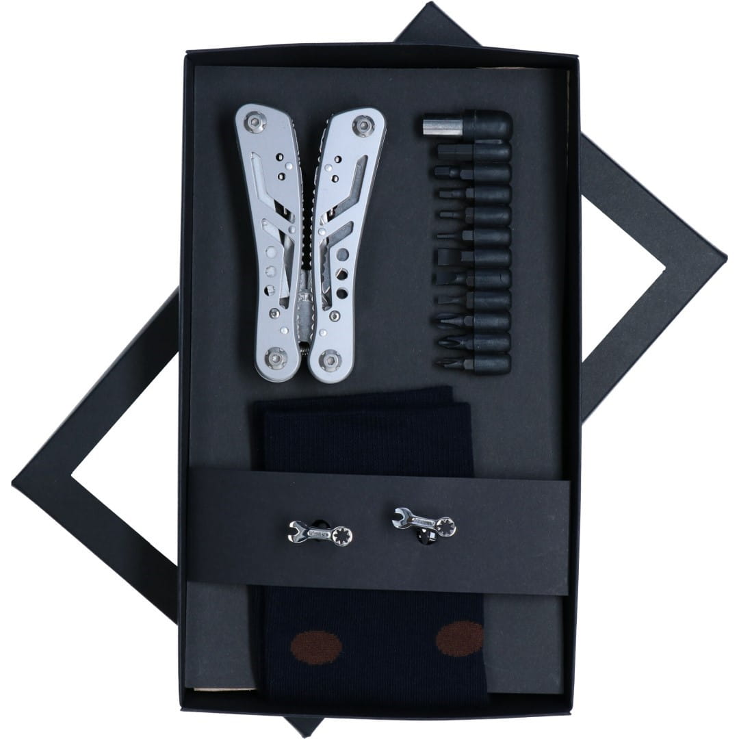 Całość zapakowana w eleganckie pudełko, które podkreśla tematyczny charakter zestawu. To idealny prezent dla mężczyzny z pasją do narzędzi i majsterkowania!